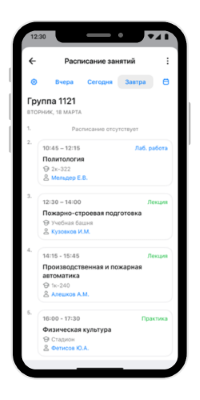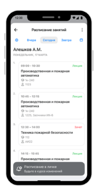 Сервис помогает студентам и преподавателям узнавать расписание на текущий день, а также уведомляет об изменениях: